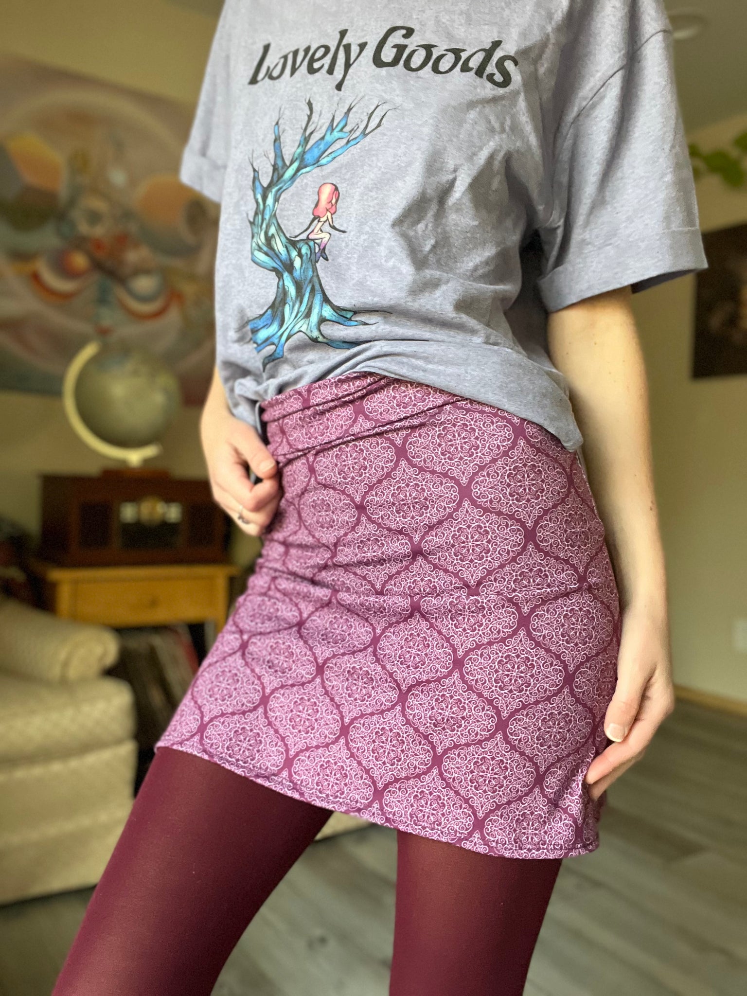 The Disco Mini is crafted from sustainably sourced cotton and recycled Lycra, ensuring a lighter weight fabric that promotes comfort and breathability. This versatile skirt is suitable for various occasions, combining eco-friendly materials with a functional design for everyday wear.
